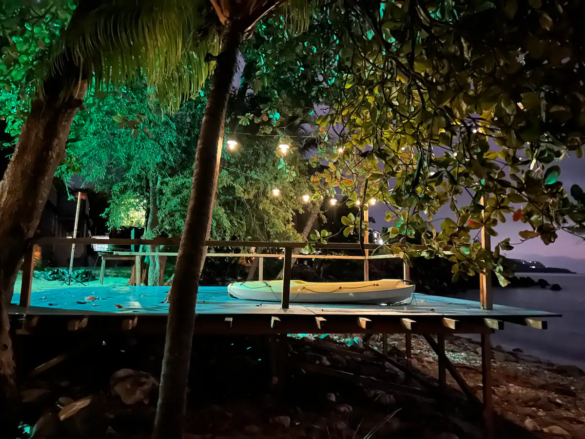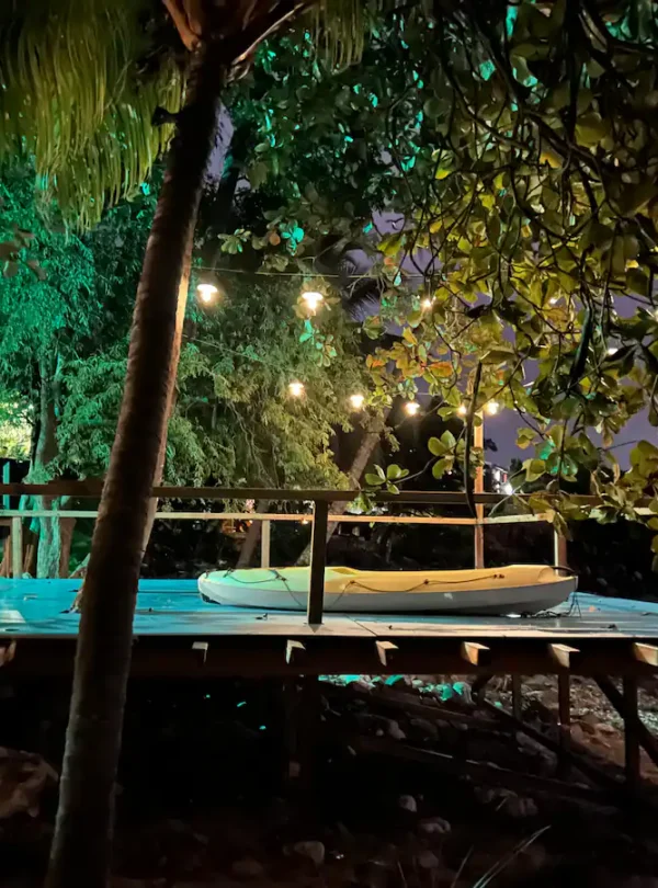 Petit Paradis, lodge les pieds dans l’eau en Guadeloupe, avec plage privée et deck en bois de 70 m² face à la mer. Deux kayaks à disposition, snorkeling avec tortues, végétation tropicale et couchers de soleil féeriques. Un lieu rare pour une parenthèse hors du temps.